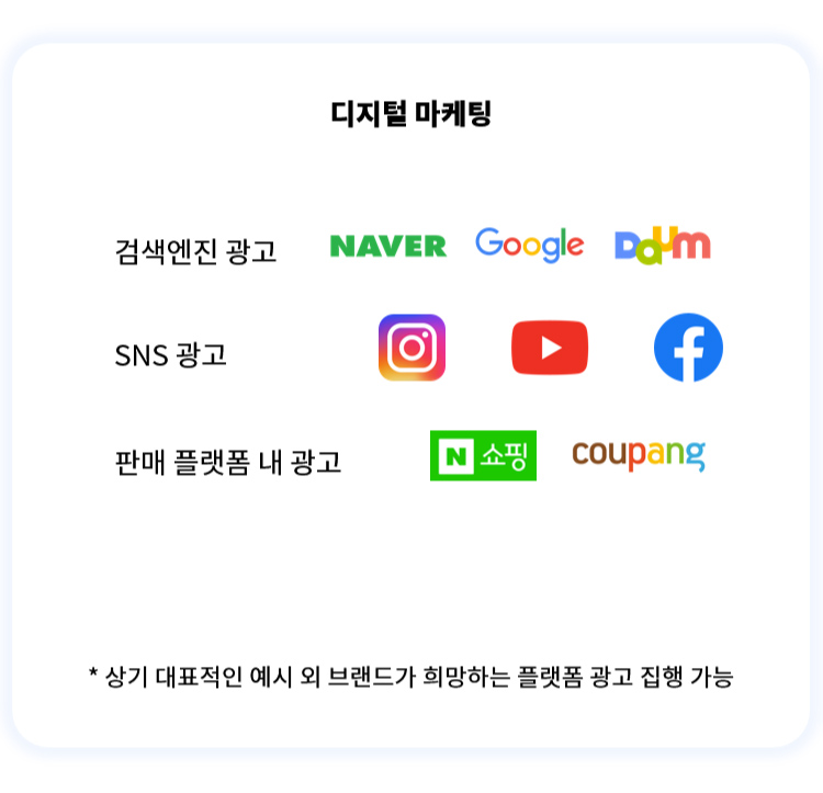 각 브랜드 상황에 따라 전체를 다 이용하실 수도, 일부만 골라서 이용하실 수도 있습니다.